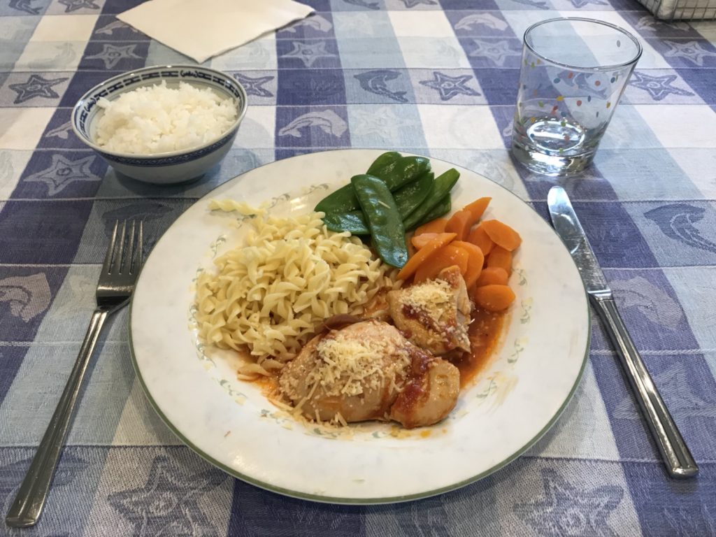 これは夕食の時の写真なのですが、夕食の時も「今日はどんなことしたの?」「子どもたちと仲良くなれた?」と優しく接していただいて、会話も弾みました!