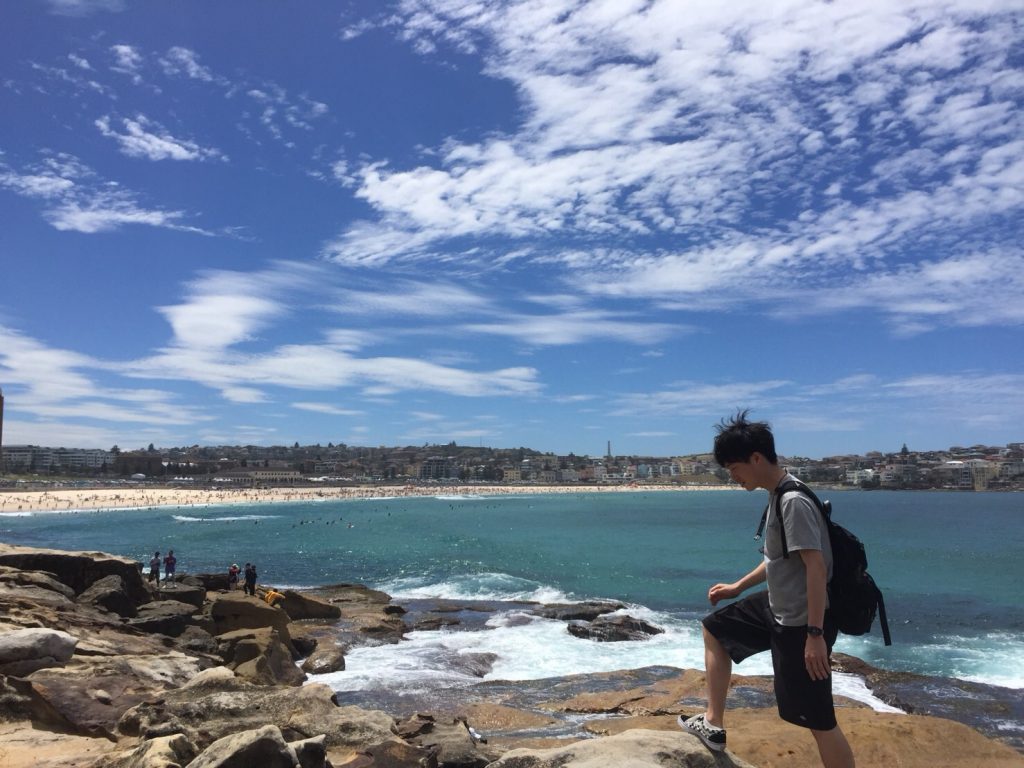 ボンダイビーチは下の写真のように崖のような所から海とビーチを一望することができます。