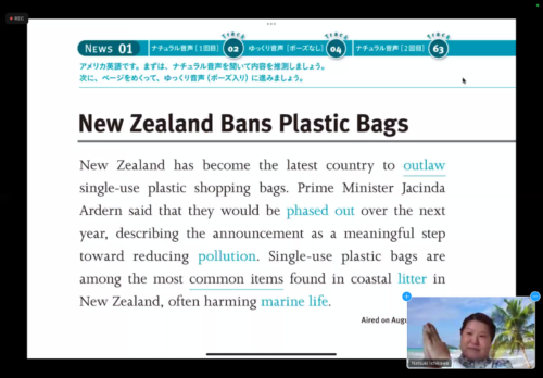 基本的にスクリプトは見ずに、ひたすら聞いて音声を真似る、シャドーイング、同時に話すという練習をしていくそう!