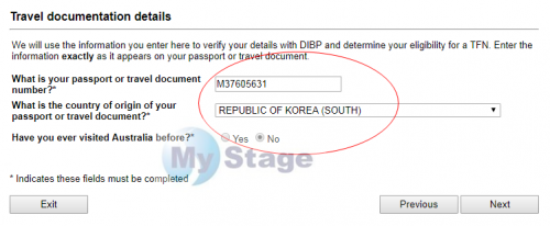 5. 본인 여권번호, 국적 입력 후, 호주 방문한 적이 있는지 Yes/No 선택 후 Next!