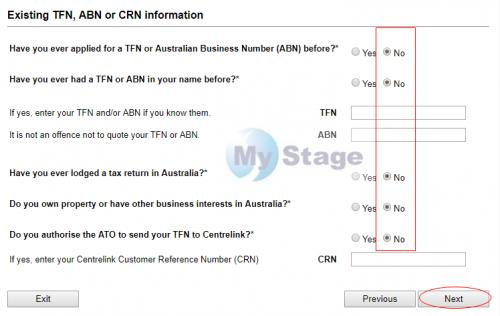 7. 이전에 호주 TFN, ABN(사업자등록번호)를 신청했었는지 등의 질문