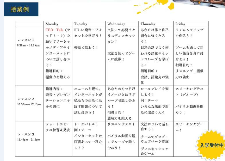 そのため、文法やスペルの学習よりも、毎日活発に発言するための練習をすることになります。