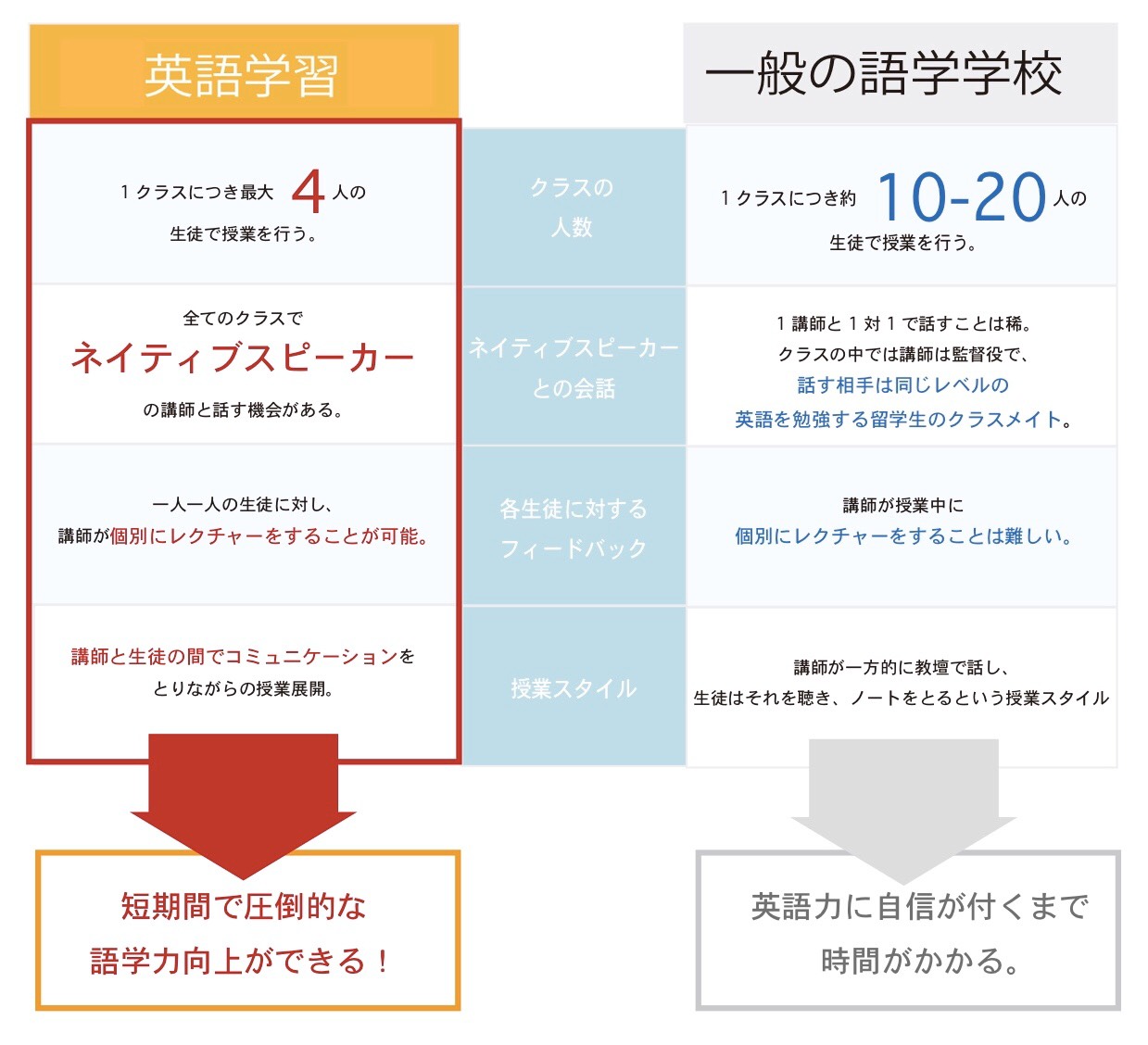 • 4週間の最大4名の少人数英語レッスン(15時間/週)